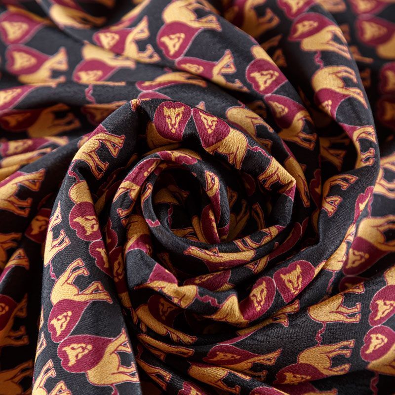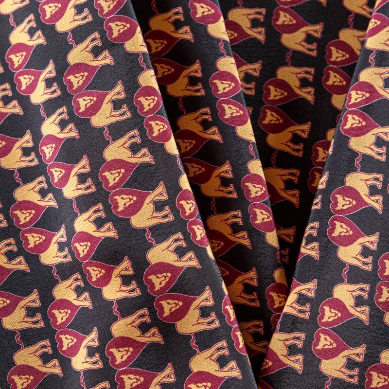 Итальянская плательно-блузочная вискоза со стилизованным "царским" принтом на черном фоне. Ткань очень пластичная, отлично драпируется и струится, мягкая и приятная на ощупь, не просвечивает. Прекрасно подойдет для пошива платья, рубашки, топа, блузки, юбки, летнего костюма.