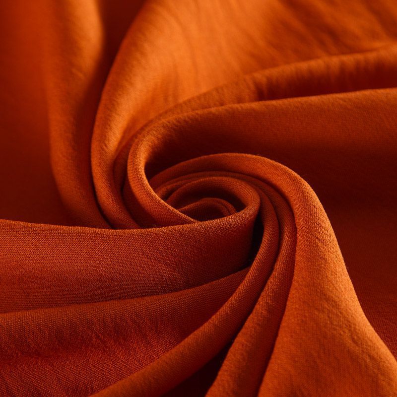 Итальянская фактурная вискоза в ярком оттенке. Поверхность имеет слегка жатый эффект, матовая, ткань плательной плотности, не просвечивает, пластичная, не сухая.