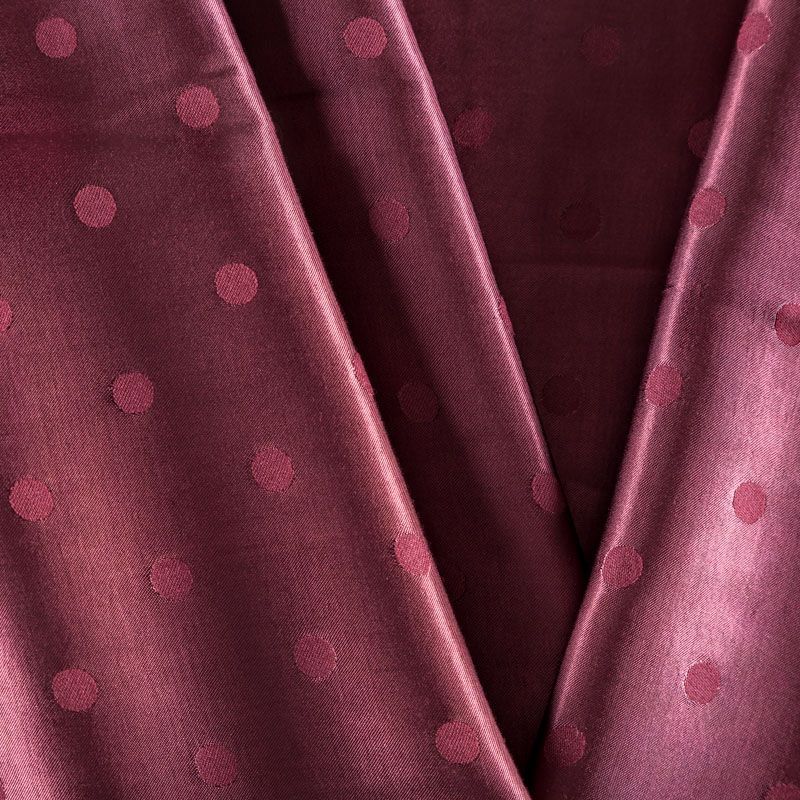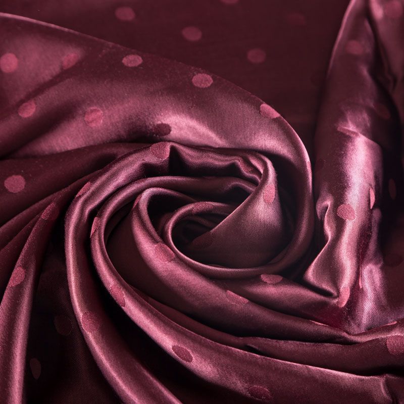 Атласная жаккардовая вискоза винного оттенка. Ткань плотная, но пластичная, хорошо драпируется и струится. Поверхность ткани гладкая, атласная, приятная на ощупь. Подойдет для пошива платья, сарафана, топа, блузки, рубашки, юбки, костюма в пижамном стиле, брюк свободного кроя, а также как подклад для верхней одежды.