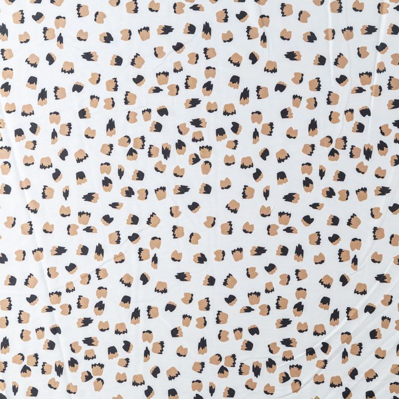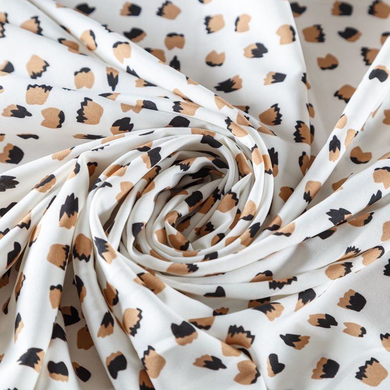 Легкая набивная ткань имеет высокую прочность, большую износоустойчивость. Материал упругий, мягкий, тянется за счет эластана в составе, хорошо драпируется, образует струящиеся складки. Идеально подойдет для пошива блуз, юбок, платьев, сарафанов.