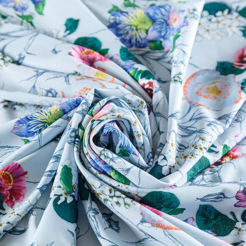 Это элегантная струящаяся ткань, которая превосходно драпируется, всегда изящно выглядит и остается легкой и воздушной,  имеет высокую прочность и большую износоустойчивость. Поверхность ткани матовая, гладкая и ровная, очень приятная на ощупь. Используется для пошива блуз, юбок, платьев, сарафанов, широких брюк.