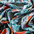 Легкая набивная ткань с цветочным принтом имеет высокую прочность, большую износоустойчивость. Ткань упругая, мягкая и хорошо драпируется, тянется за счет эластана в составе, образует струящиеся складки. Идеально подойдет для пошива блуз, юбок, платьев, сарафанов.