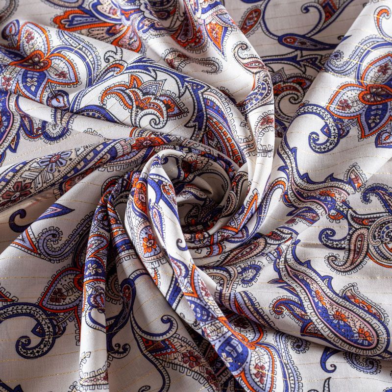 Вискоза с люрексом 009-00901 молочный принтованный в Северодвинске