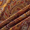 Итальянская плательно-блузочная вискоза с фантазийным растительным принтом пейсли в золотисто-коричневом оттенках декорирована тонкой люрексовой нитью. Ткань очень пластичная, отлично драпируется и струится, мягкая и приятная на ощупь, не просвечивает. Прекрасно подойдет для пошива платья, топа, блузки, юбки.