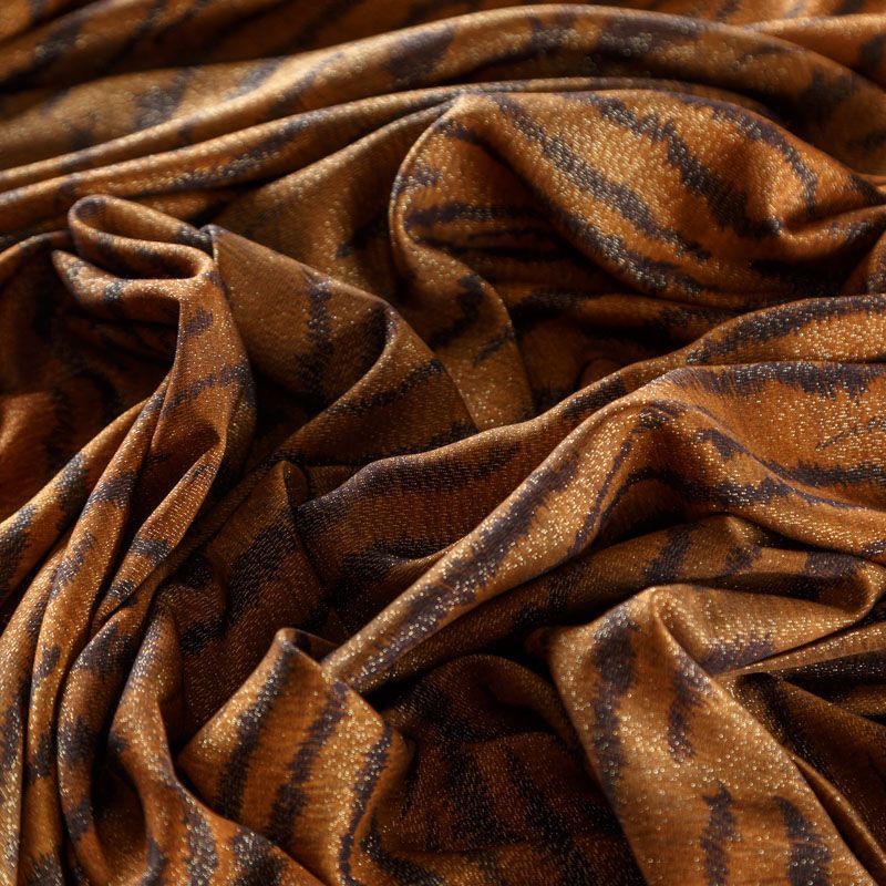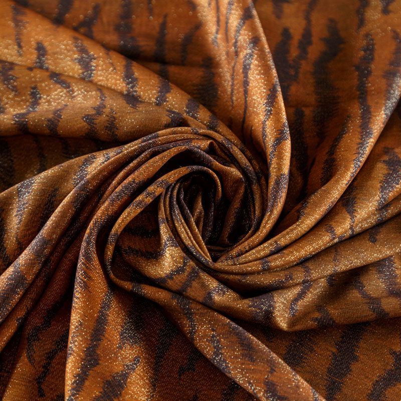 Итальянская плательно-блузочная вискоза с анималистическим принтом. Яркий, искрящийся акцет ткани придает вплетенная в волокна люрексовая нить. Ткань очень пластичная, отлично драпируется и струится, мягкая и приятная на ощупь, немного просвечивает. Прекрасно подойдет для пошива платья, топа, блузки, юбки, комбинезона, накидки.