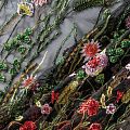 Итальянское полотно черного цвета с флористическим узором, расшитым бисером и стеклярусом. Узор вышит на тонкой сетке с мелкой ячейкой, сетка мягкая, пластичная, матовая, не держит форму. Прекрасно подойдет для вечерних платьев, юбок, топов, бюстье. Эффектно смотрится на теле без подкладочной ткани, например, рукава платья. Ткань набирается объемом.