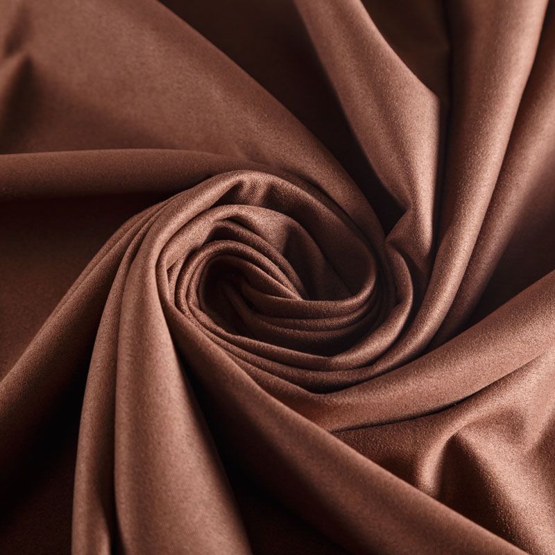 Плотное полотно с мягкой поверхностью, имитирующее замшевую фактуру с матовым ультракоротким ворсом. Комфортный материал достаточно пластичен, тянется за счет эластана в составе, отлично держит форму. Одежда из замши очень уютная и приятная на ощупь, хорошо облегает фигуру. Прекрасно подойдет для пошива платья, брюк, юбок, костюмов, тренчей и жакетов.
