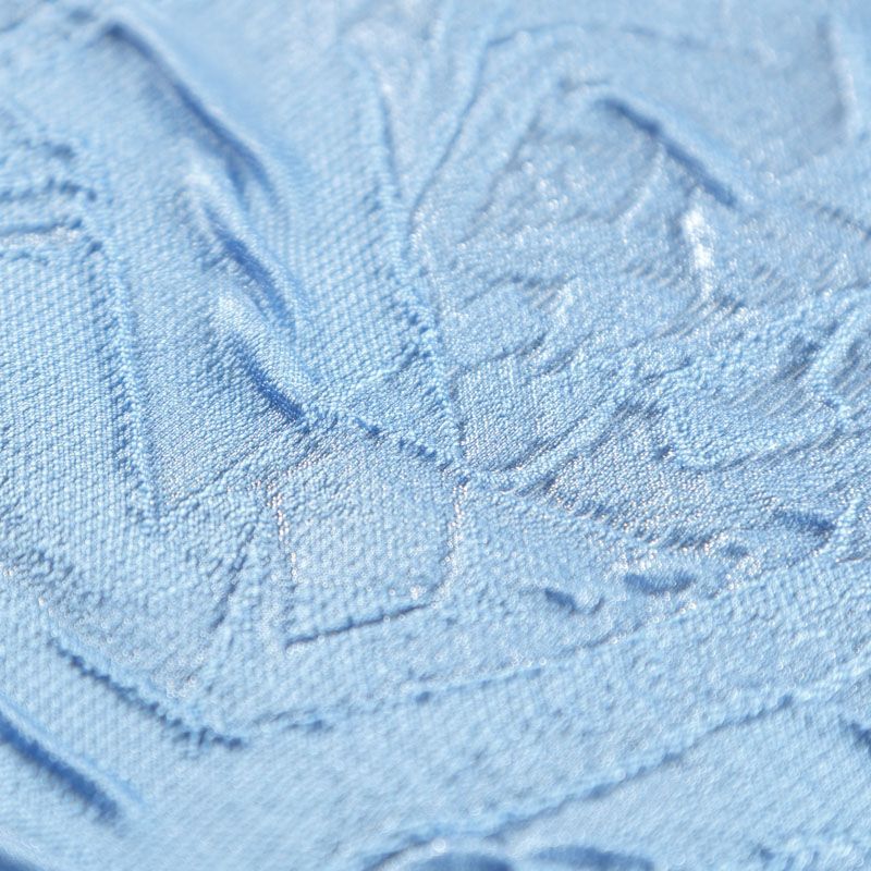 Нарядный итальянский 3D жаккард в холодном голубом оттенке. Ткань легкая, но плотная, поверхность со сдержанным блеском объемная и текстурная, хорошо драпируется и держит форму, не тянется, не просвечивает. Подойдет для пошива нарядных вечерних костюмов, платьев, жакетов, топов, легких пальто, бомберов, юбок или шорт.