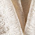 Нарядный шелковый итальянский жаккард молочного оттенка. Ткань легкая, поверхность со сдержанным блеском объемная и фактурная, хорошо драпируется, не тянется и не просвечивает. Подойдет для пошива нарядных вечерних костюмов, платьев-футляров или стиле Dior, жакетов, топов, летних пальто, юбок или шорт.