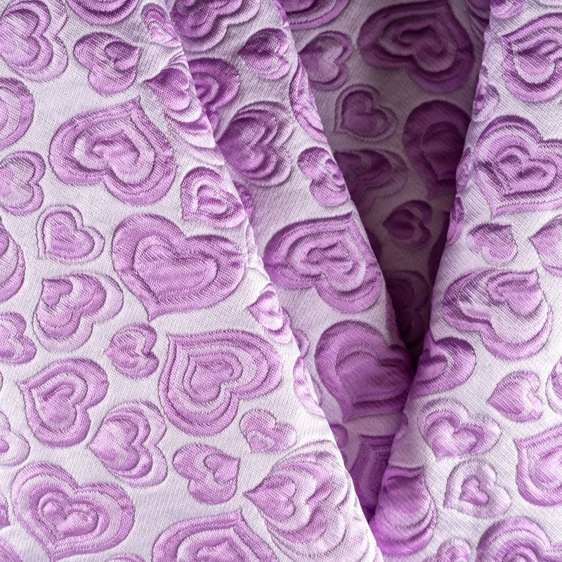 Итальянский жаккард с нежным и романтичным 3D дизайном из маленьких сердечек в сочетании холодного розового и сиреневого оттенков - очень стильный и оригинальный. Ткань легкая, поверхность со сдержанным блеском объемная и фактурная, хорошо драпируется, не тянется и не просвечивает. Подойдет для пошива нарядных вечерних костюмов, платьев-футляров или стиле Dior, жакетов, топов, летних пальто, юбок или шорт.