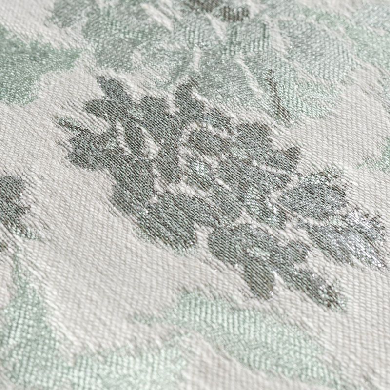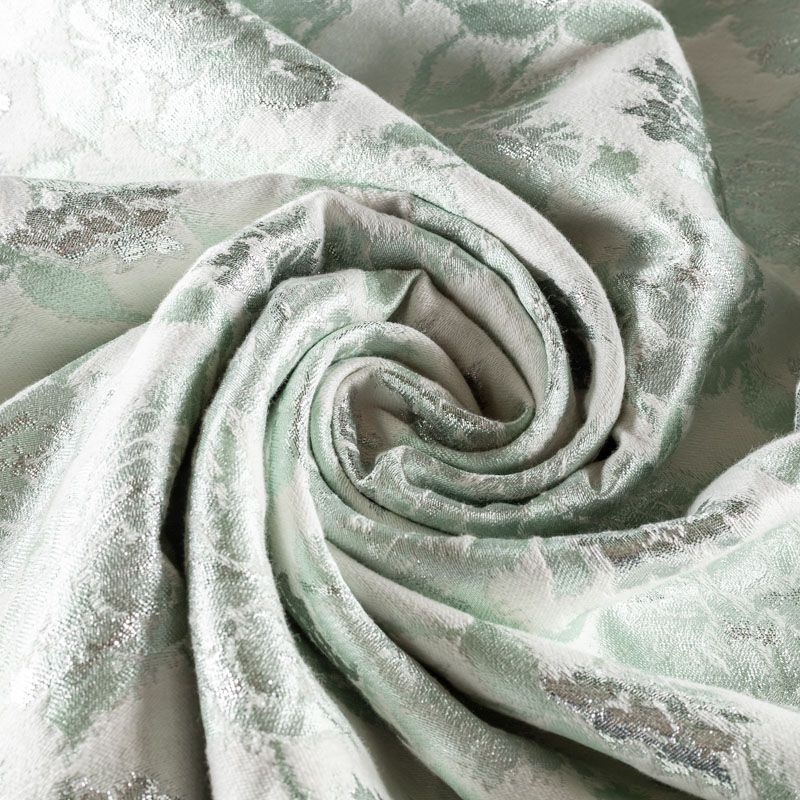 Итальянский хлопковый жаккард нежного мятного оттенка с добавлением люрексовой серебристой нити с растительным дизайном. Ткань легкая, но плотная, поверхность матовая, фактурная, хорошо драпируется и держит форму, не тянется и не просвечивает. Подойдет для пошива нарядных вечерних костюмов, платьев-футляров в стиле Dior, жакетов, топов, летних пальто, бомберов, юбок или шорт.