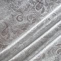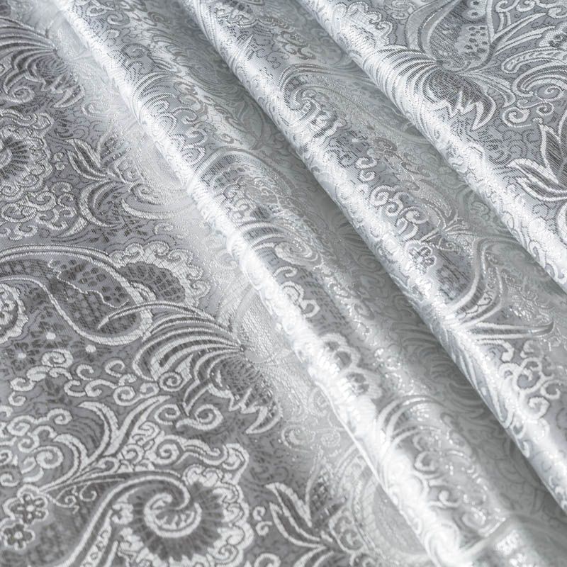 Насыщенная ткань плотного переплетения с декоративной поверхностью, покрытая сложным орнаментом из блестящих нитей. Ткань легкая, отлично драпируется, держит форму, отличается прочностью, долговечностью, износостойкостью и простотой в уходе, не смотря на свою высокую декоративность. Нарядность ткани придает золотая люрексовая нить. Подходит для пошива юбок, платьев, топов, сценических костюмов.